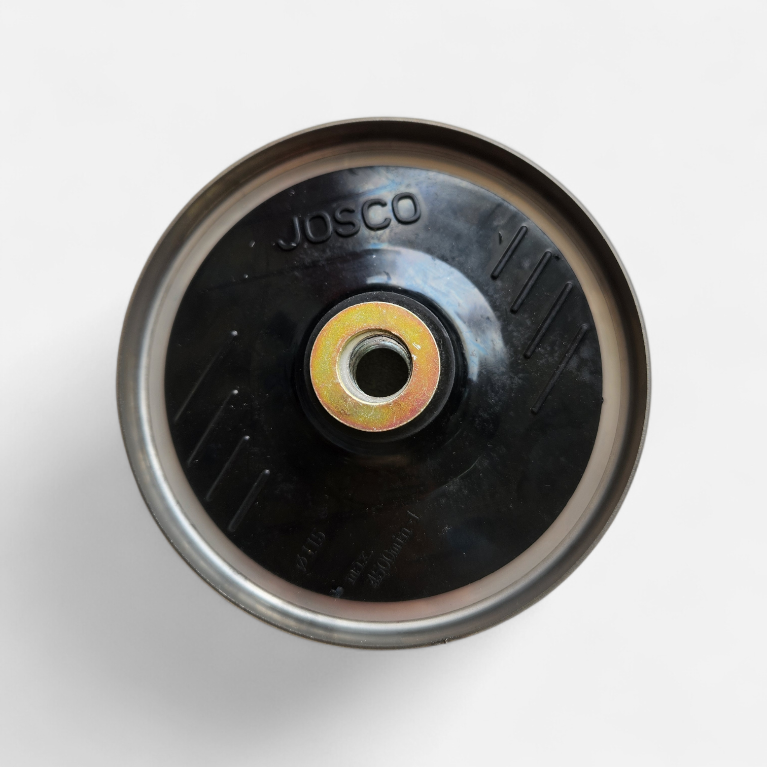- The disc is spun against the metal surface at moderate pressure.
